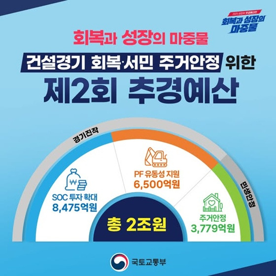 국토교통부가 2차 추가경정예산에서 건설업계 활성화와 서민 주거비 지원에 총 1조8754억원을 신규 반영했다고 5일 발표했다. 침체된 건설경기 회복과 서민 주거안정을 동시에 지원하는 종합대책이다.